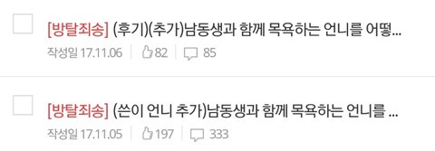 11월 6일 일베 (후기)(추가)남동생과 함께 목욕하는 언니를 어떻게 해야할까요?