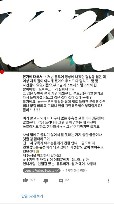 레나님 네이트판 관련해서 댓글 올라옴