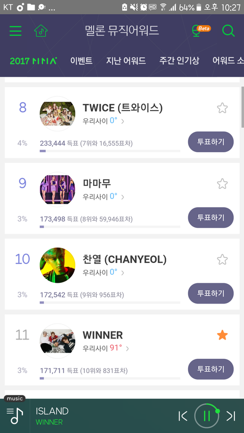11위로 내려왔다 음원만 믿고 투표 안하는건 절대 안됨