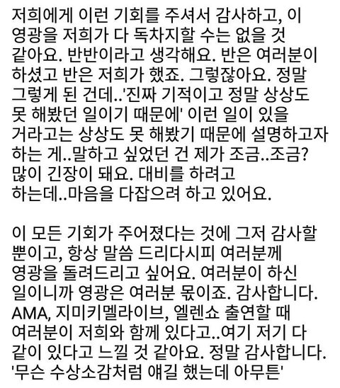 모든 성공을 멤버들덕, 팬덕으로 돌리는 사람