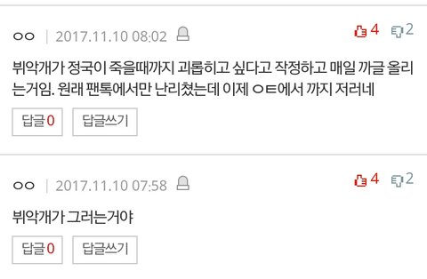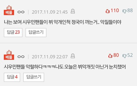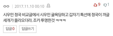 정/국 왜 까이냔글에 베플이랑 댓글들 수준봐..