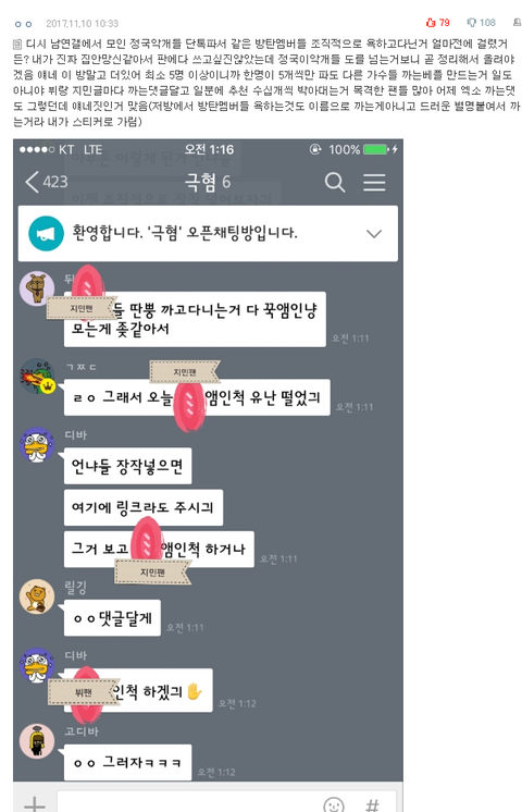 정/국팬들 대체 왜 저럼? 자기들 하소연글에서 몇명을 욕하고있는거야