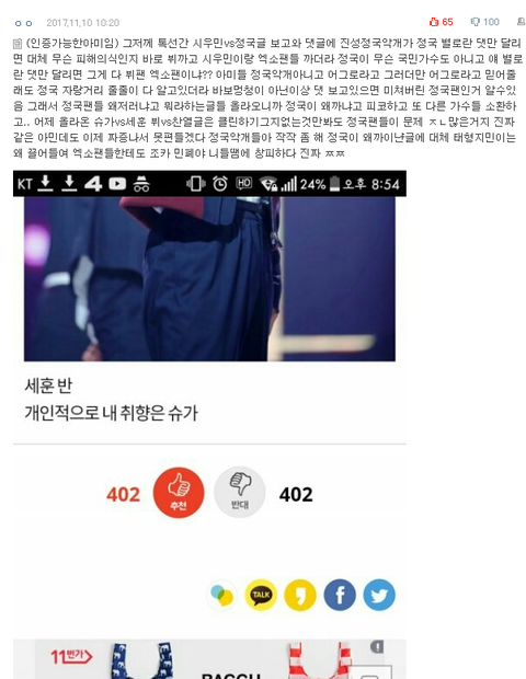 저러니까 저렇게 정국글에 타가수들 까는베플이 가능했던거구나..