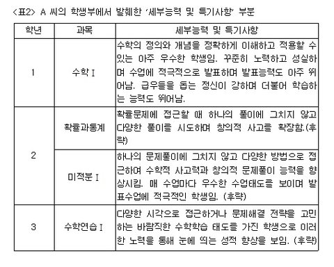 너희들 항상 이런글 보면 자기가 수업시간에 뭐 했는지, 무슨 대회에 참여했는지 항상 기록해두라는 내용이 많았지? 그 이유가 이 세부특기사항에 써놓으려고 하는거야.