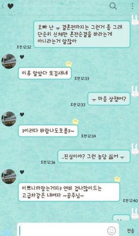 자기 밑깔개 노릇을 해주지 못할테니까 안된다고 게다가 요즘 살기도 힘든데 여자