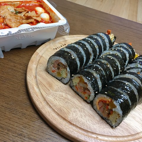 ㅈㅅ떡볶이포장해와서 김밥세줄 후딱말았어요!ㅎㅎ
