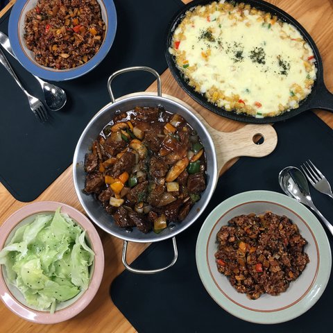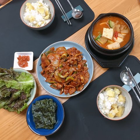 고구마밥+제육볶음+된장찌개