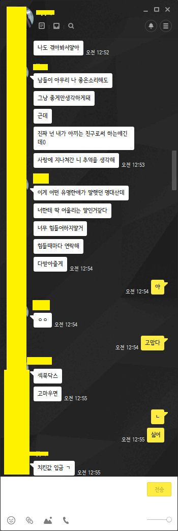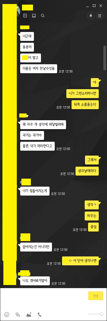 술마실땐 언제든 연락하라고 하던 너의 남사친도너와 나에 대한 얘기는 하고싶지 않다고 뚝 끊어 말 하더라