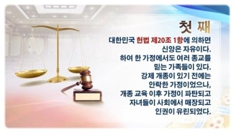 대한민국은 엄연히 종교자유 국가이고,대한민국 국민이라면 그 누구든지 헌법 아래 보호받아야 할 권리가 있습니다.