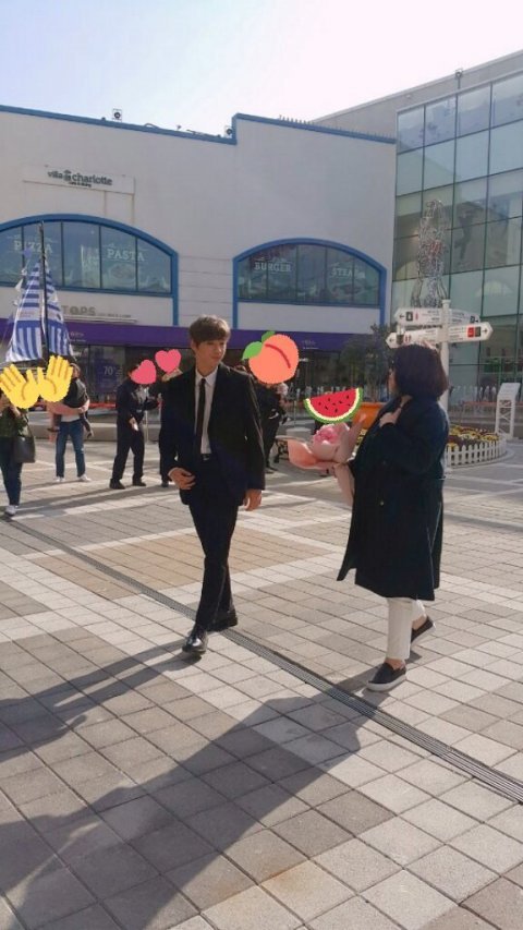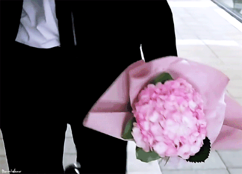 여자와있는거보고 꽃다발뒤로숨기고가는짤