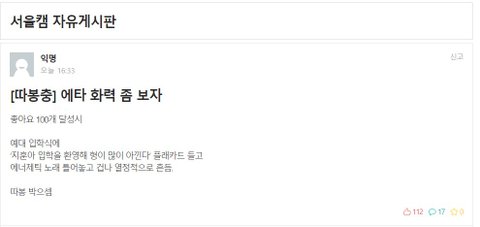특례 아닌데욬ㅋㅋㅋㅋㅋㅋㅋㅋㅋㅋ 너 중대 아니지??? ㅋㅋㅋㅋ 페북에 진짜 중대생이 글 올림 입학할때 형이 애낀다고 플랜카드 들면서 서있겠다고 ㅋㅋㅋ