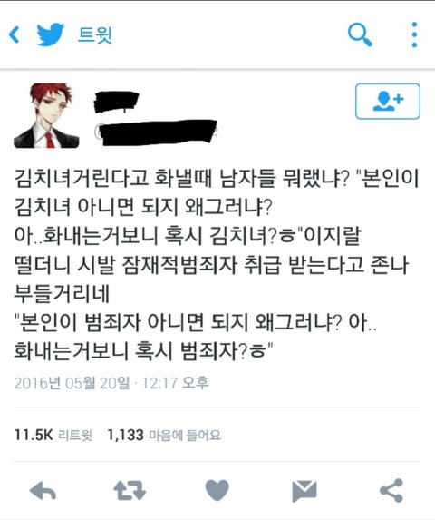 김치녀거린다고 화낼때 남자들 뭐랬냐?.twt