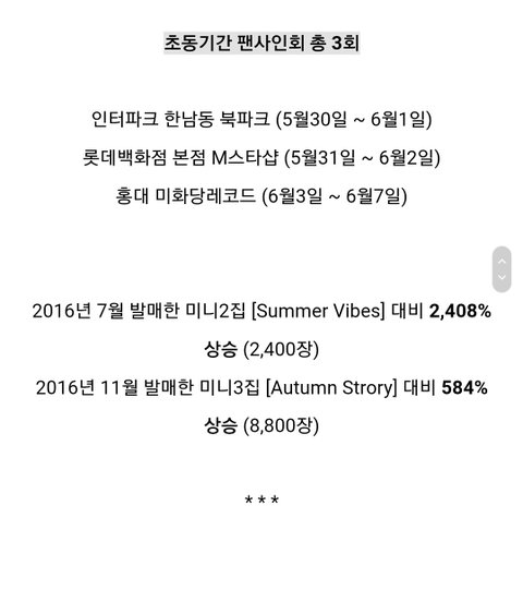 베이비 초동 6만장에서 이번 앨범때 1만장미만으로 떨어질만한 이유가 대체 뭐지??? 팬싸비중이 암만 커도 커버할만한 수치가 절대아니고, 베이비때 유입된 팬들이 많아서 그렇다는 해명도 설득력없음., 그럼 그때 유입되서 6만장이나 구매한 팬들이 겨우 5개월만에 다 탈덕이라도 한거임???