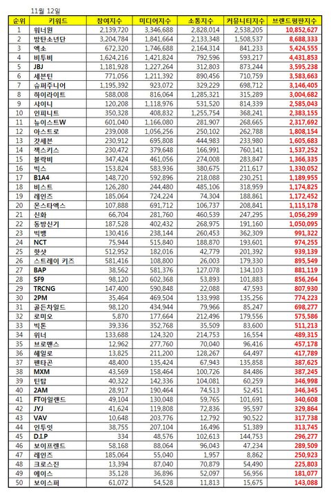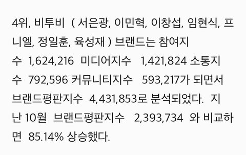 ❤️ 비투비 11월 브랜드평판 4위 ❤️