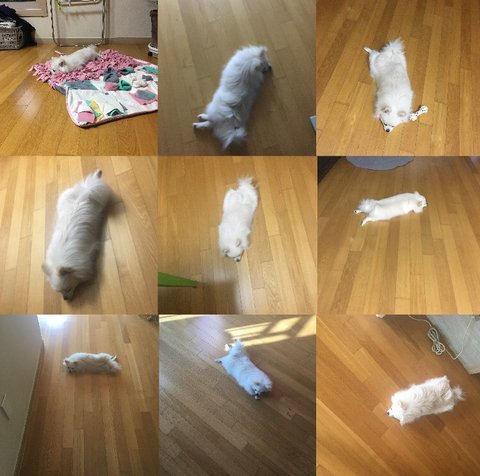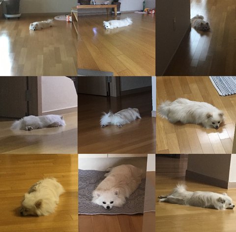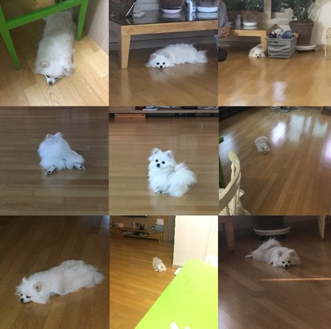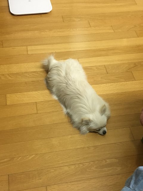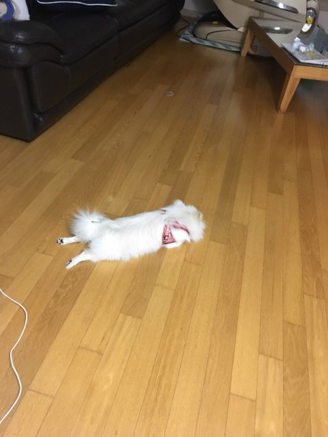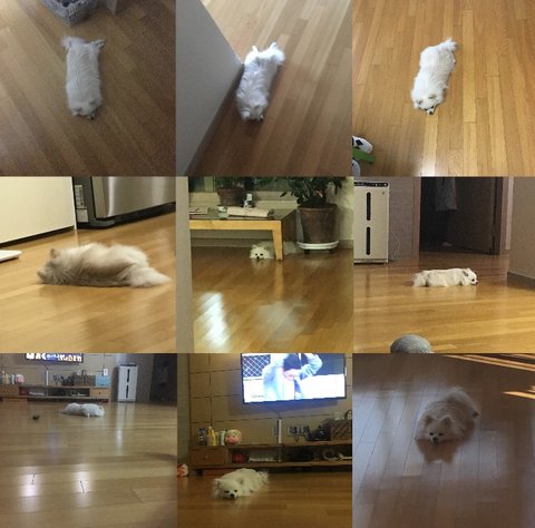 신나게 놀다가 졸릴때마다 저렇게 누워있네요 ㅎㅎㅎ 녹은것 같아요 아 그리고 포메 맞으니 포메 아니라는 댓글 달지 말아주세요!
