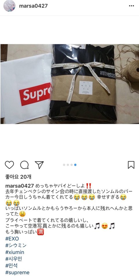 '작년 첸백시 싸인회때 직접 선물하신거래 ㅋㅋ