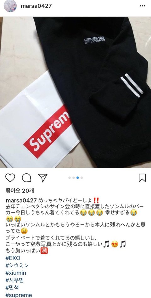 오 시우민 일본팬분이 서폿한 옷 입었넹 ㅋㅋ