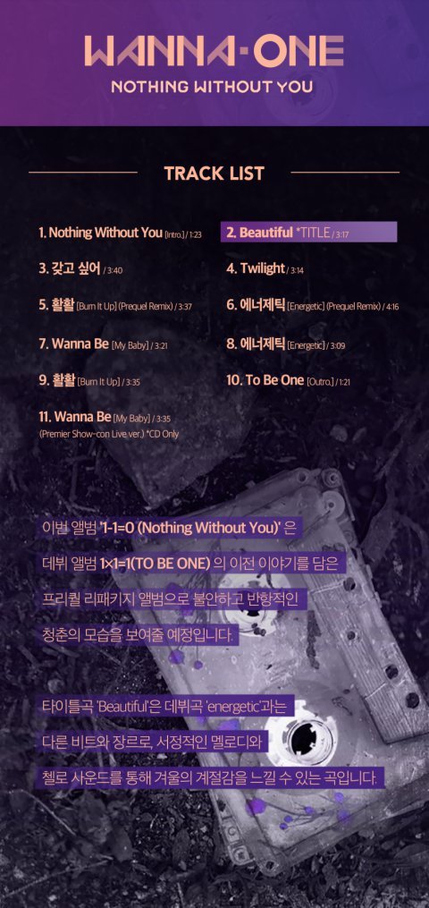 18시 각종 음원사이트에서 공개되는 앨범 1-1=0 (nothing without you), 타이틀곡 "Beautiful" 많이 들어 주세요❤공개된 뮤직비디오도 한 번씩 봐주시면 감사하겠습니다❤