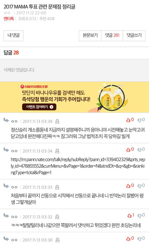 이 댓쓴이랑 같은 댓쓴인가? 이 댓글 삭제해서 뭔 댓글이었는진 모르겠는데 뭔가 이 댓글에서 욕먹고 엔터글 새로 판 삘;