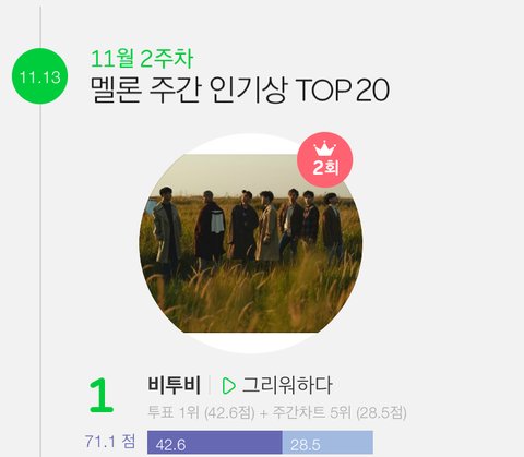 주간인기상 1위
