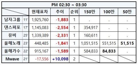 2시30분~3시30분 추이 마이너스임