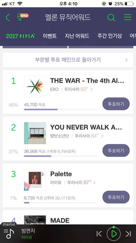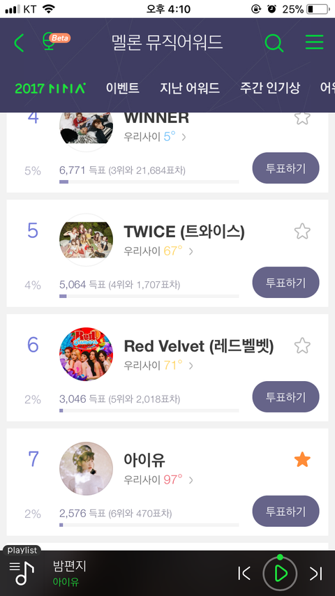 아티스트상!!!! 투표 차 얼마 없으니까 역전하자!!!