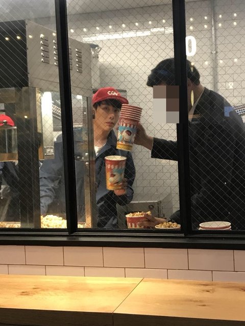팬클럽 단체로 영화관람와서 직접 팝콘 퍼줫다함
