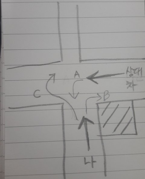 상대방차량은 저보고 c방향으로 비켜서 가라대요?