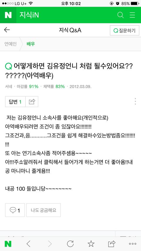 ㅌㅌㅋㅋㅋㅋㅋㅋ내가 지금도 좋아하는 김유정언니! 닮고싶어서 저런글 올렸었나봐........왜 저랬을까 하하하하