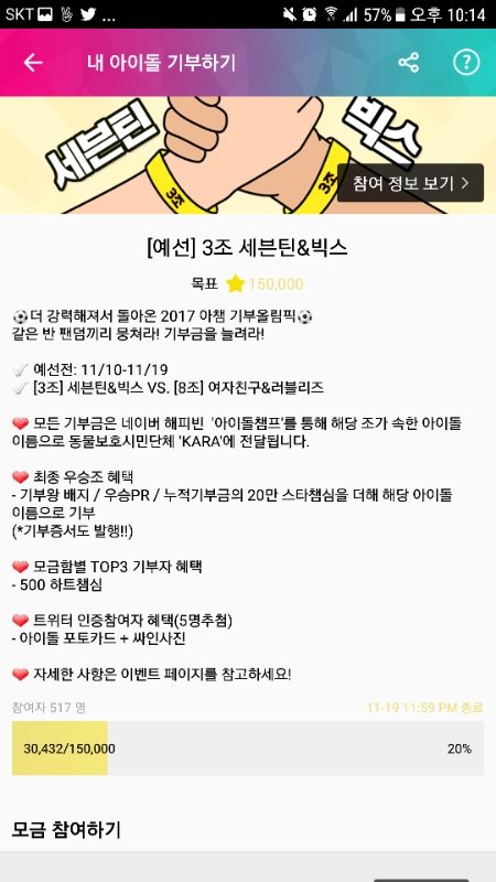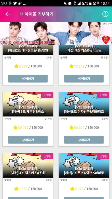 이거 아2돌챔ㅣ프 다운 받고 투표하는 건데 1위 팀 이름으로 기부도 해!! 이때까지 우리가 거의 1등했던걸로 기억하는데 이번에도 캐로시들 힘 보여주자ㅠㅠ 결승도 있으니까... 나 한명쯤 이런 생각 하지 말고 꼭 1등하자ㅠㅠ 스밍 투표 못하는 캐럿들은 이거라도 꼭 해줬음 좋겠어ㅠㅠ..