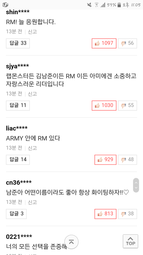 댓글이 너무 너무 예쁘다 ㅜㅜ 우리 김알엠