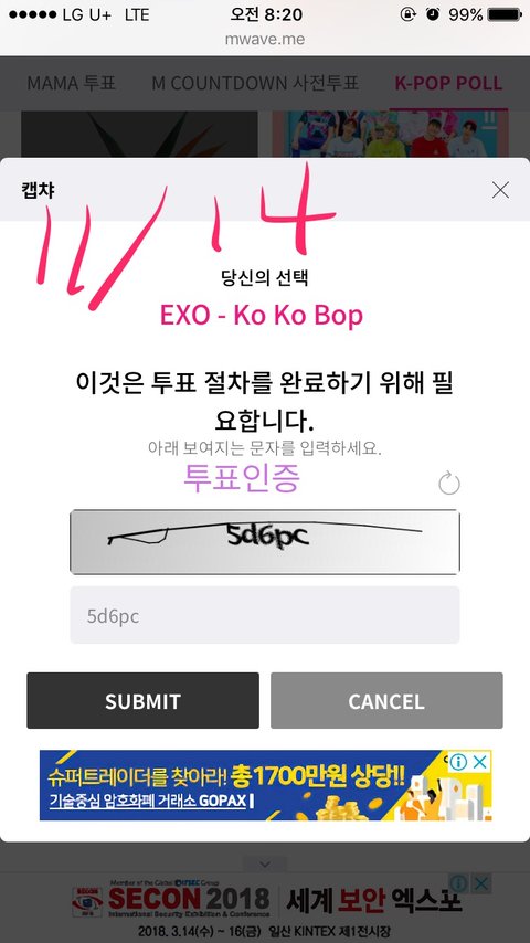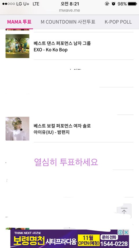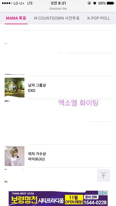 저번에 왔었던 유애나인데요 ㅎ제 실친중에 엑소팬이 너무 힘들어해서 투표 인증하러 왔어요 ㅎ
