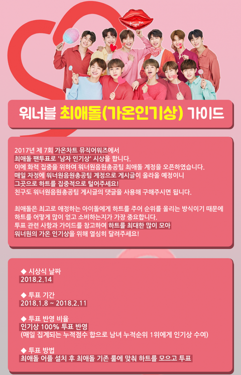6. 최애돌앱✔가온 인기상 (1월8일~2월11일) 100퍼센트 투표로 주는상 ❤가온용 최애돌 가이드❤