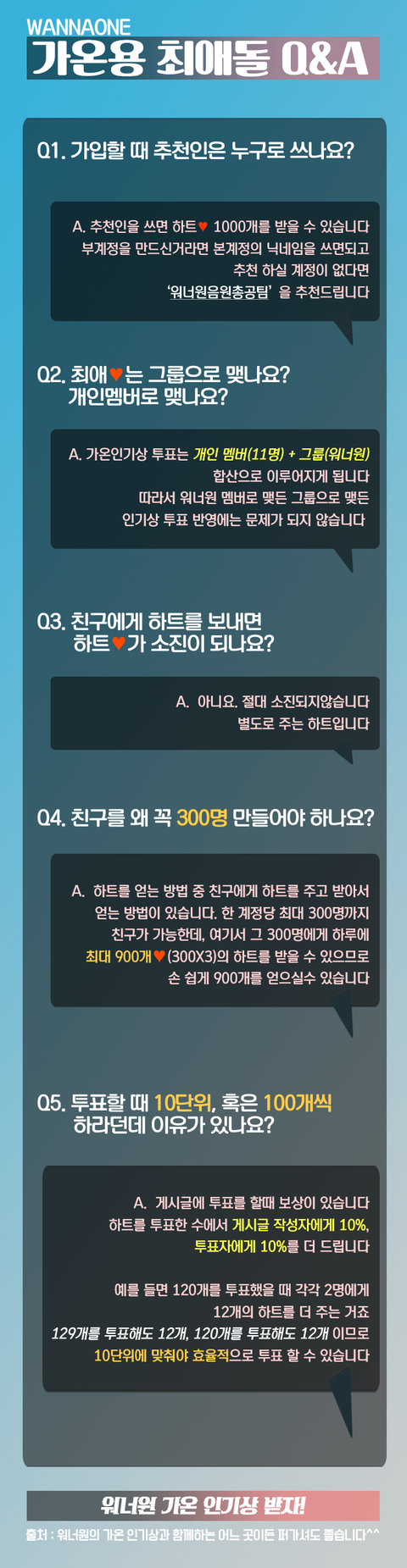 더이상 추천인을 <워너원음원총공팀>으로 쓰지 말것!20회이상 추천인으로 쓰일시 보상하트 안줌.
