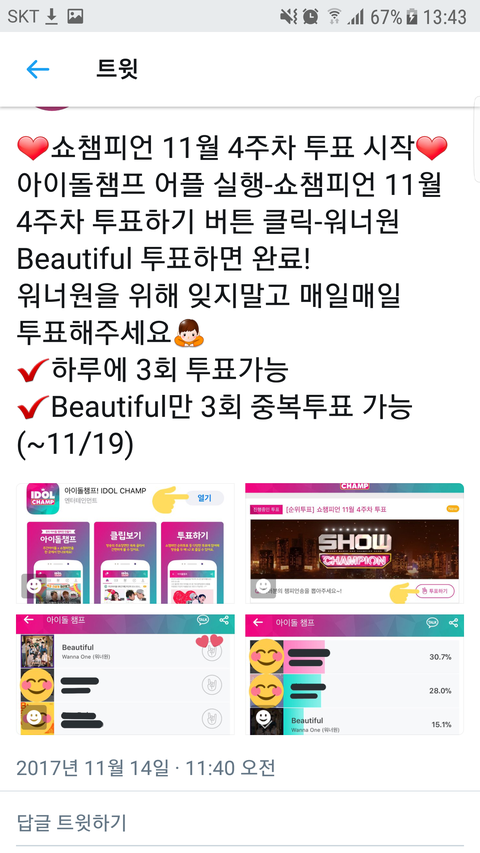 쇼챔 투표 순위심각