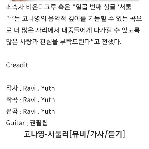 크루분하고 같이 써서 여가수분 드린 곡 나왔더라. 좋더라~ 들어봐들..