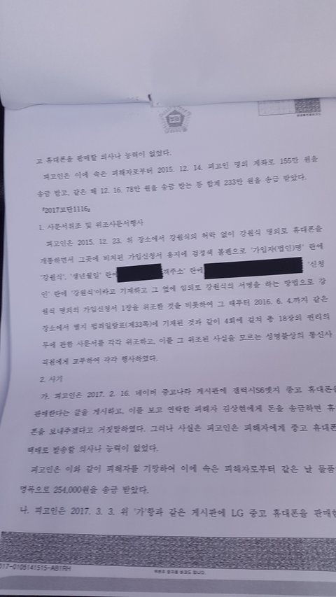 불법으로 기기변경시키고 재판 판결문에 사문서위조로