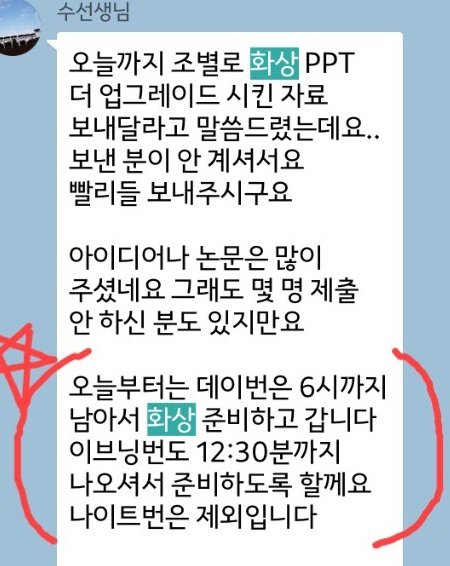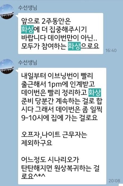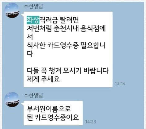 (아래는 화상회의 준비 강요 내용 및 영수증 가져오도록한 카톡 캡처 자료입니다.)