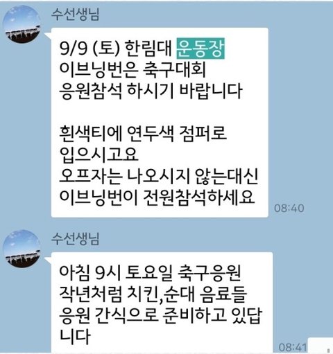 (아래는 2015년-2017년 9월에 연습 강요 및 행사 참여 강요 카톡 캡처 자료입니다.)
