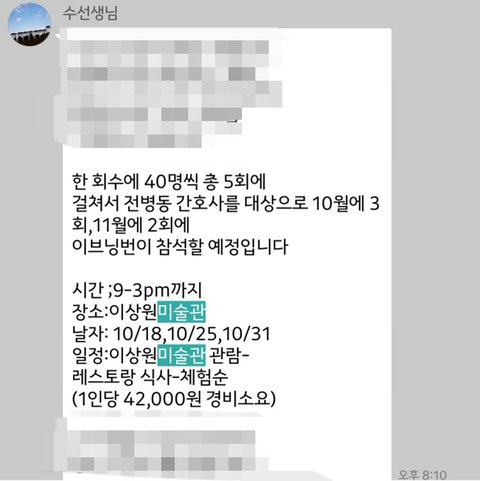 또한, 준비에 필요한 대부분의 물품은 간호사들의 사비로 구매했으며 미화부 여사님들이 계심에도 불구하고, 간호를 제공하던 환자앞에서 쭈그리고 앉아 벽이나 바닥을 닦아야했습니다.