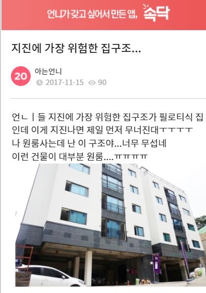 지진에 가장 위험한 집구조..