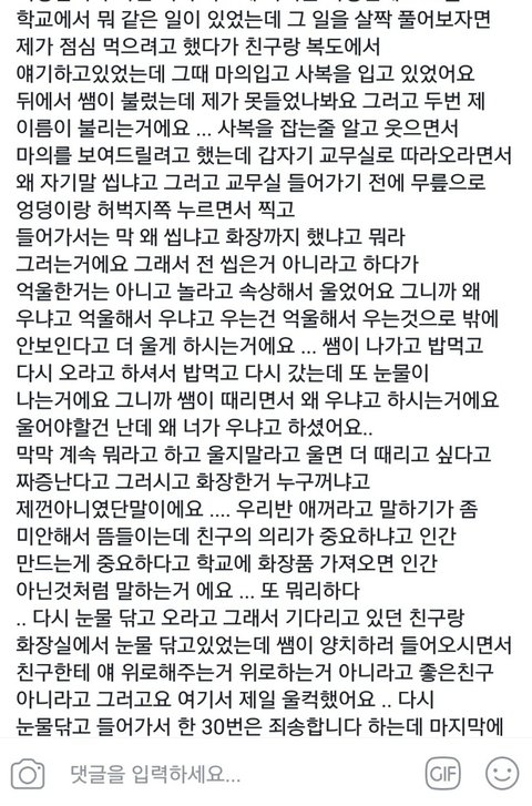 이런거 처벌 가능하지 않아? ㅈㄴ 아직도 이딴쌤이 있다는게 놀라울 따름