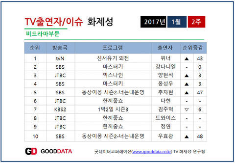 마지막으로 11월 2주차 비드라마 부문 화제성 2위 강다니엘 ♡