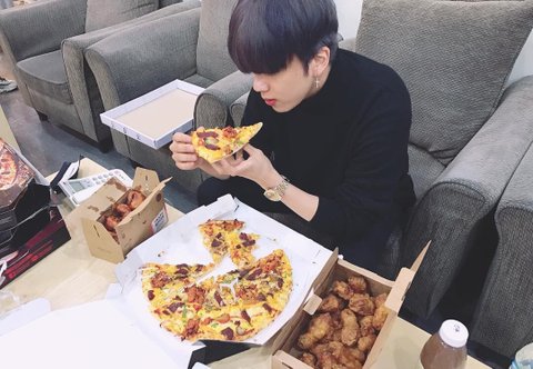 라디오전에 피자먹는 모습ㅠㅠㅠㅠㅠ 근데 영재머리 염색한건가?? 약간 남색인데ㅠㅠㅠㅠㅠㅠ 오늘 보이는라디오니까 꼭 본다.. 둘 다 라디오도 잘함 완벽하다ㅜ