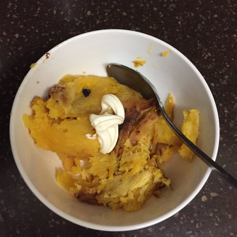 1.찐고구마를 으깨주고 마요네즈를백원보다조금넣어줘 (나는 고구마 한개썻고 조금큰 고구마야!!)그리고 후추도 조금넣어줘 후추는 넣을생각없었는데 튀김가루찾다가 그냥 넣으면 좋을고 같아서 넣었는데 괜찮더라 !!