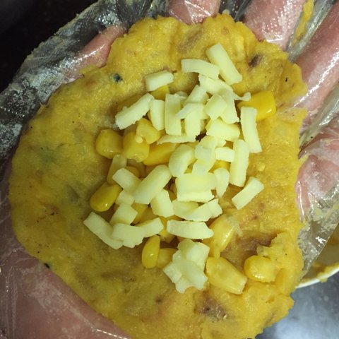 준비물:찐고구마,케첩,튀김가루,숟가락,접시 ,일회용장갑,옥수수,치즈