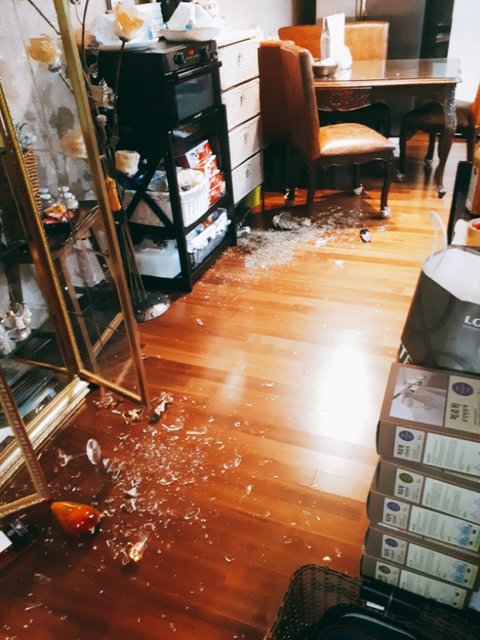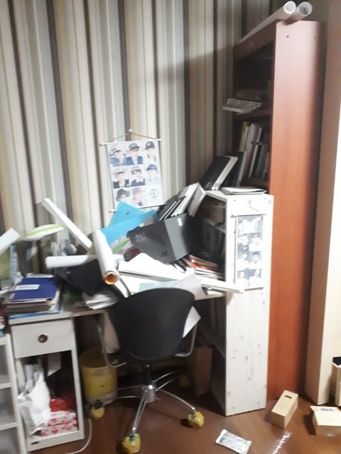 보고 주저앉음 5년모은 내 굿즈 신발 다 깔려서 뭉개지고 깨짐