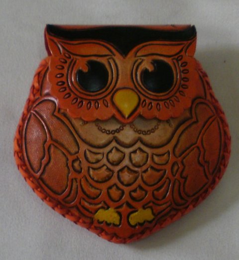 가죽에 부엉이 패턴을 카빙하고 염색하여 제작한 핸드메이드 동전지갑입니다.madisaart