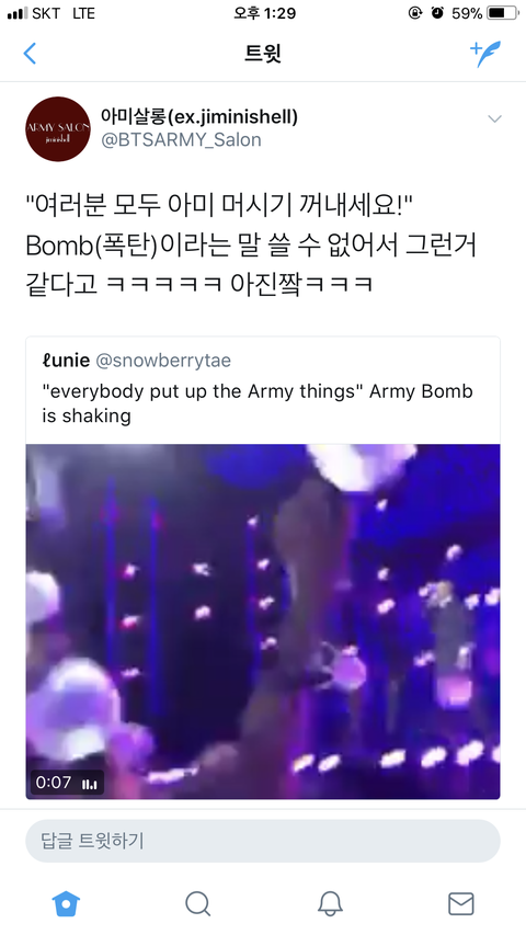 아미어머님이 애들대신 방탄영접