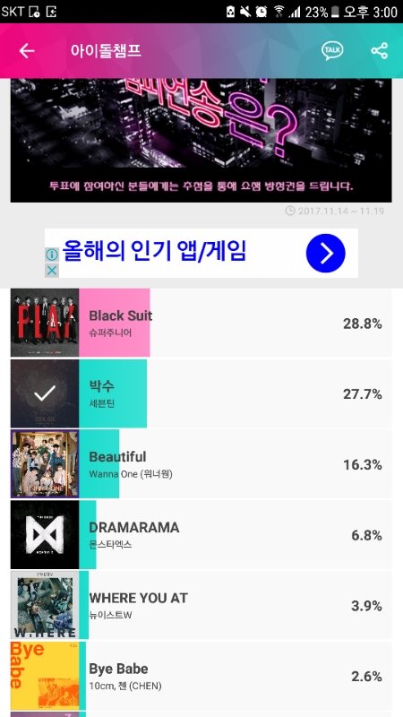 아2돌 챔프 투푠데 하루 세번이야 다시 역전당했어ㅠㅠㅠ 역전하자ㅜㅜ!!